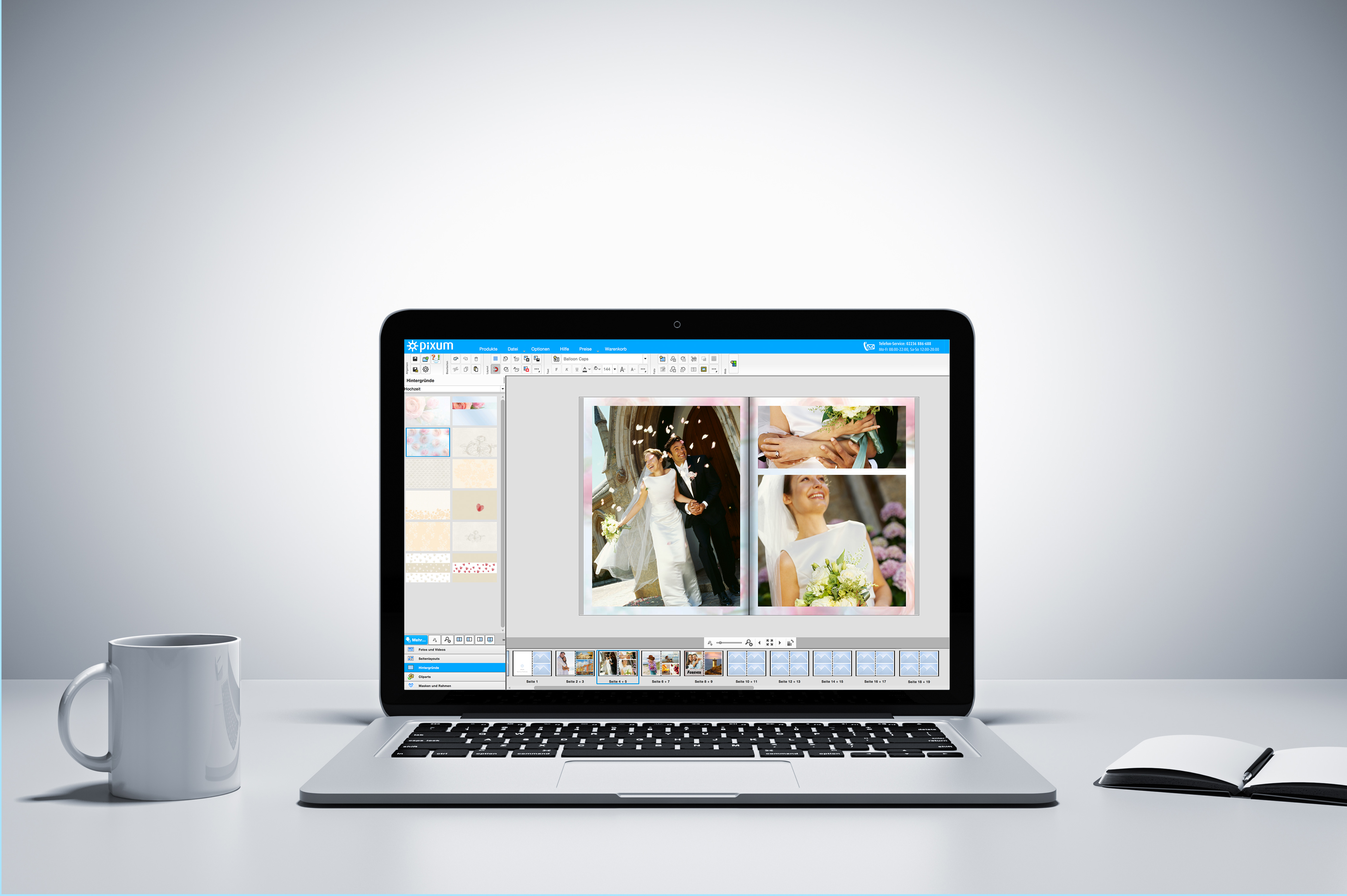 In the Pixum Photo World software, you will find a wide range of different - simple or eye-catching - backgrounds in the section "Backgrounds". You can limit the selection to certain categories in the Dropdown menu and for example, only patterns and designs for wedding, vacation or Christmas fade in. To try a certain background, simply drag and drop it onto the corresponding page in the photo book by Drag & Drop.