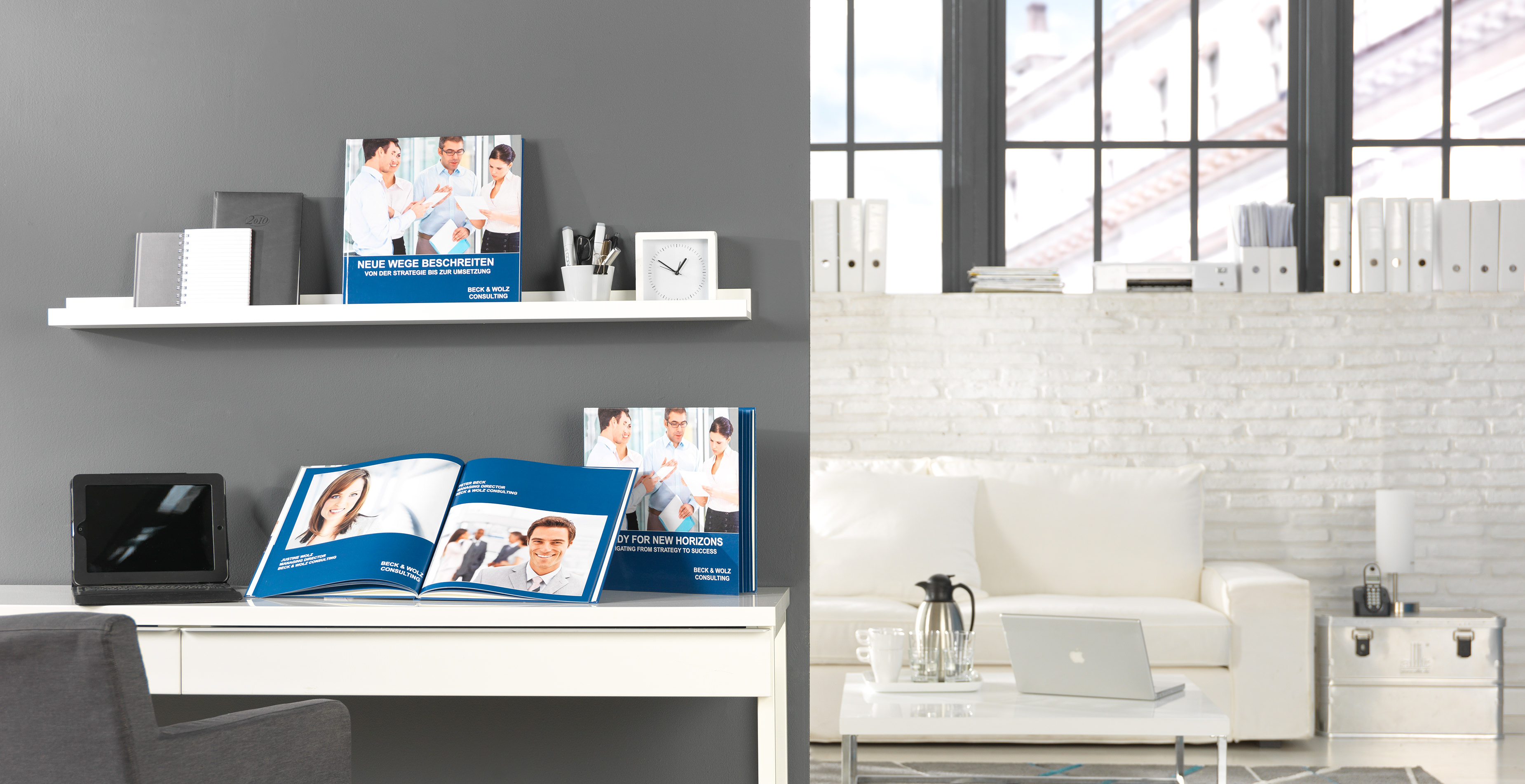 For photo books that focus on artworks and, for example, show abstract paintings or photographs, discrete backgrounds are often more suitable: this makes it simple to keep the viewer's attention on the printed images. Business portfolios also appear particularly noble with plain, monochrome background.
